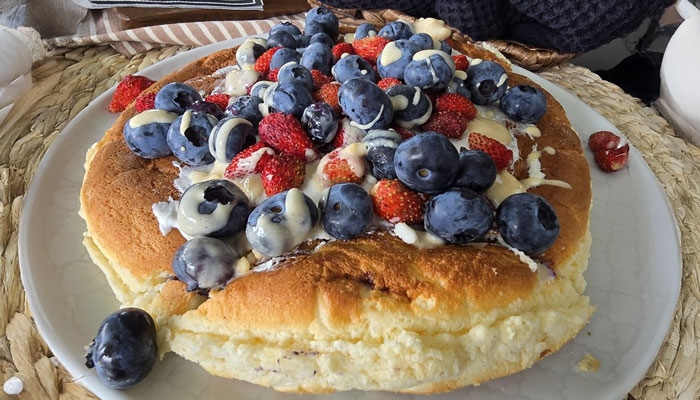Szybki, wysokobiałkowy omlet z borówkami i skyrem bez cukru – idealny na diecie, przy insulinooporności, Hashimoto i cukrzycy typu 2.